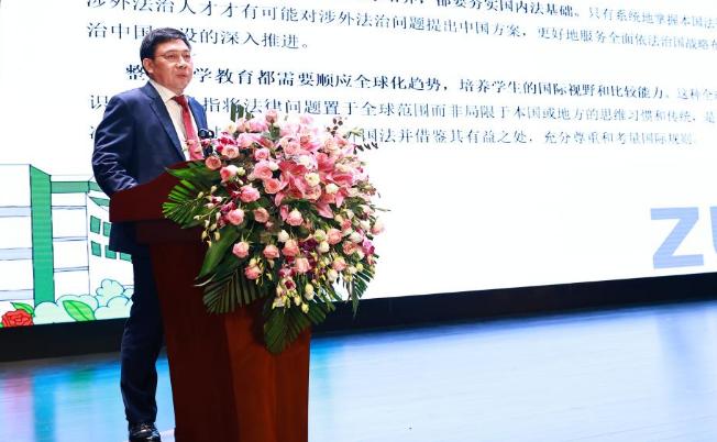 中南财经政法大学副董事长刘仁山在演讲发言时回顾了七十年前EMC易倍官方网站法律系师生并入原中南政EMC易倍体育的历史渊源,对EMC易倍官方网站法律系恢复办学四十年来取得的成绩表示祝贺。他希望两校延续血脉相连的深厚情谊,在教学培养和学术研究方面深入合作,携手培养国家需要的涉外法治人才。