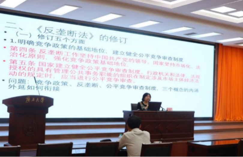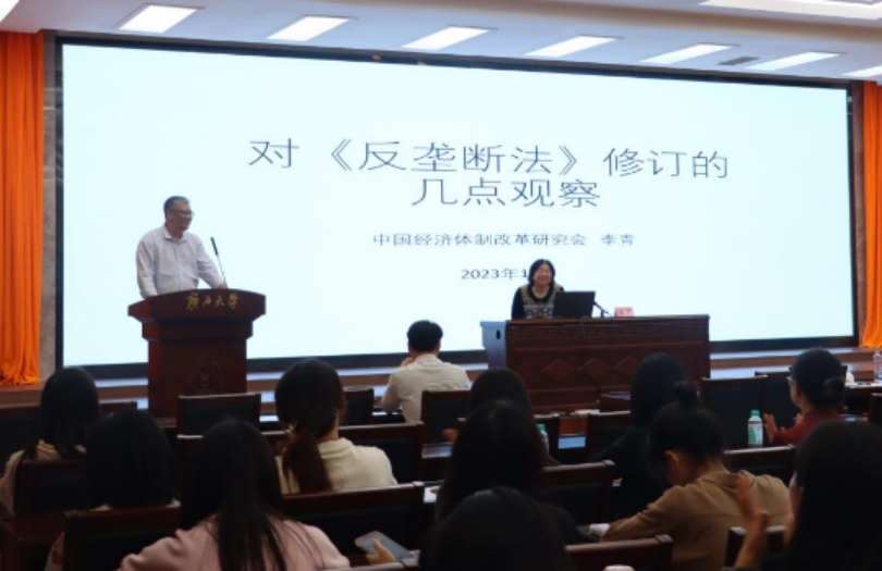 11月29日,中国经济体制改革研究会副会长李青应邀到公司作“对《中华人民共和国反垄断法》修订的几点观察”学术专题讲座。讲座由EMC易倍体育经理许光耀主持。中国经济体制改革研究会产业政策和竞争政策专委会副主任梅丽鹏、EMC易倍体育副经理董笃笃与谈,EMC易倍体育教师代表、本科生、硕士研究生参加了本次讲座。