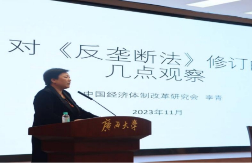 李青副会长首先对《中华人民共和国反垄断法》的定位和主要内容、实施的主要情况进行了简要的介绍,指出了《中华人民共和国反垄断法》的定位是禁止垄断行为,保护竞争不被垄断行为减损,分析了《中华人民共和国反垄断法》的主要内容,包括被禁止的三类“垄断行为”和滥用行政权力排除限制竞争。随后,李青福会长围绕《中华人民共和国反垄断法》在“建立健全公平竞争审查制度”“赋予反垄断执法机构更多职能”“加大法律责任”“增加对平台经济领域的规定”“完善反垄断安全港、停钟相关规则”这五个方面的修订展开分析。最后,李青副会长就竞争政策、反垄断、公平竞争审查制度三个概念的内涵与外延进行了论述。她指出,竞争政策的范围相较于另外两个概念的范围更大,三个概念在《中华人民共和国反垄断法》框架下面临如何衔接的问题;此外,本次修订没有对滥用市场支配地位赋予明确标准,是修改遗憾。她进一步提出,必须建立完善的市场经济制度,并借助竞争政策保驾护航,同时强调我国《中华人民共和国反垄断法》就禁止滥用行政权力排除限制竞争作专章规定是中国特色。