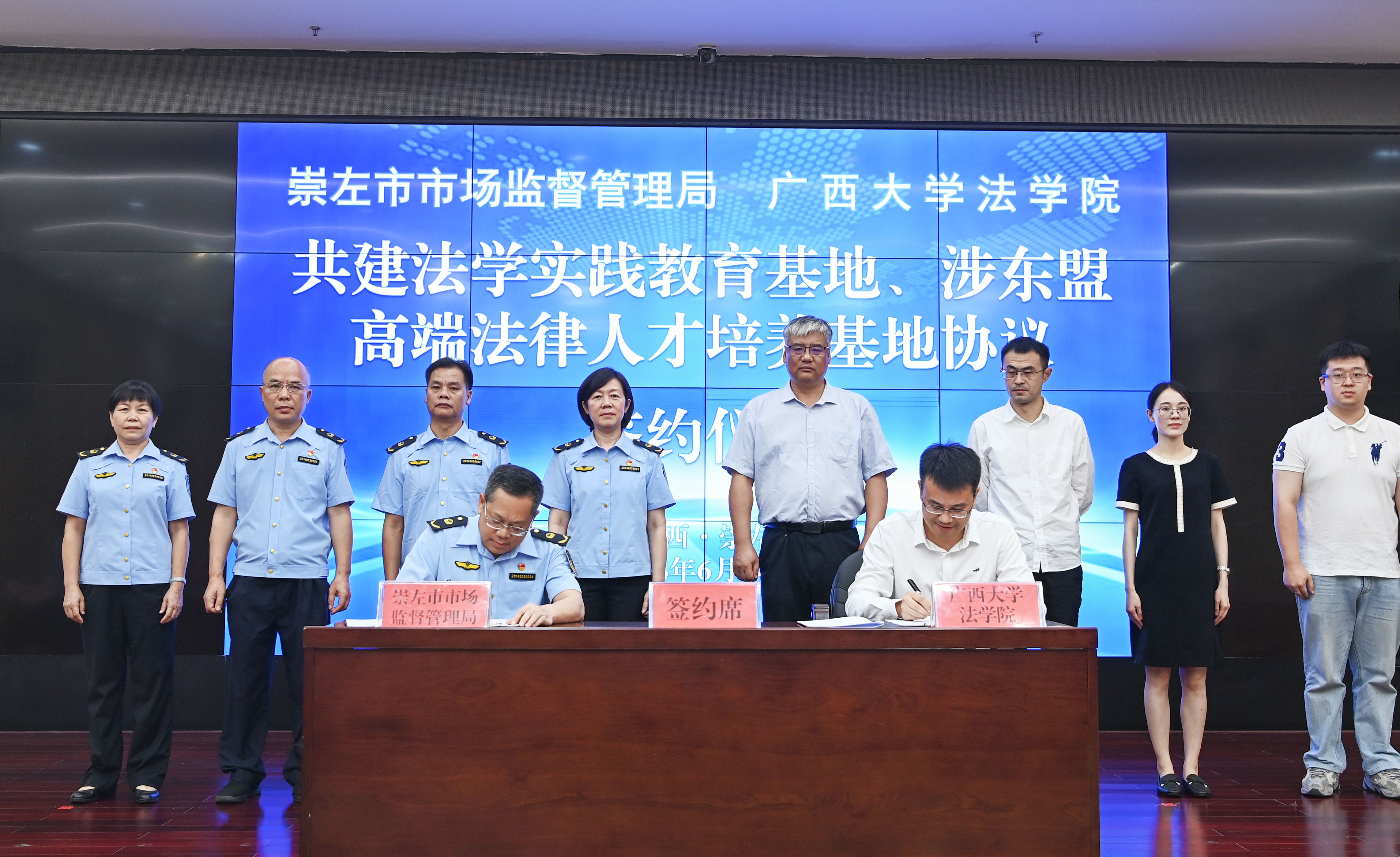 6月14日,公司分别与崇左市市场监督管理局、司法局签订共建EMC易倍官方网站“法学实践教育基地”及“涉东盟高端法律人才培养基地”协议并举行合作交流座谈。
