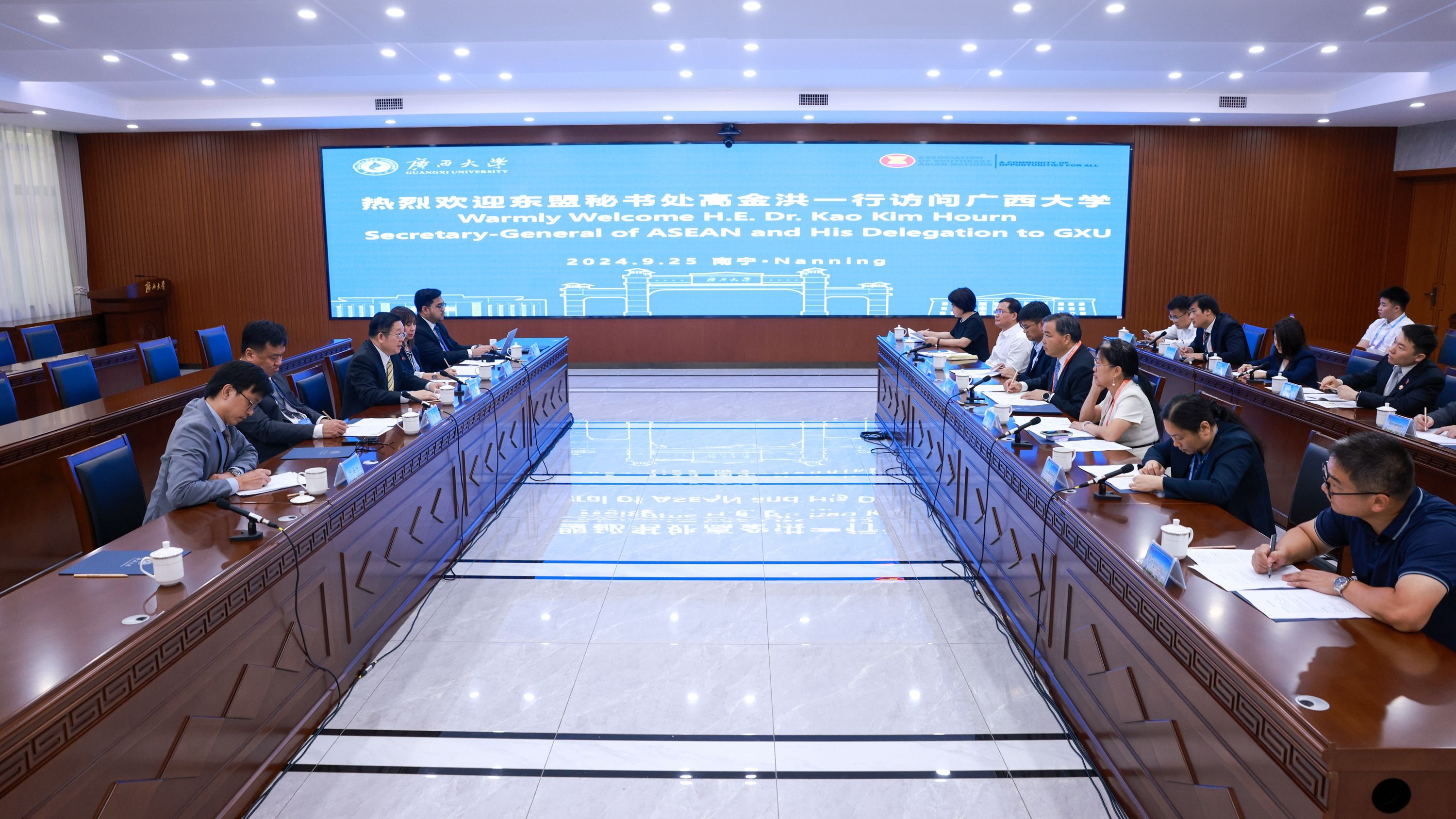 9月25日,东南亚国家联盟秘书长高金洪(Secretary-General of ASEAN, H.E. Dr.Kao Kim Horn)携代表团访问EMC易倍官方网站,并与师生代表交流、座谈。公司董事长韩林海、副董事长肖建庄会见来宾。