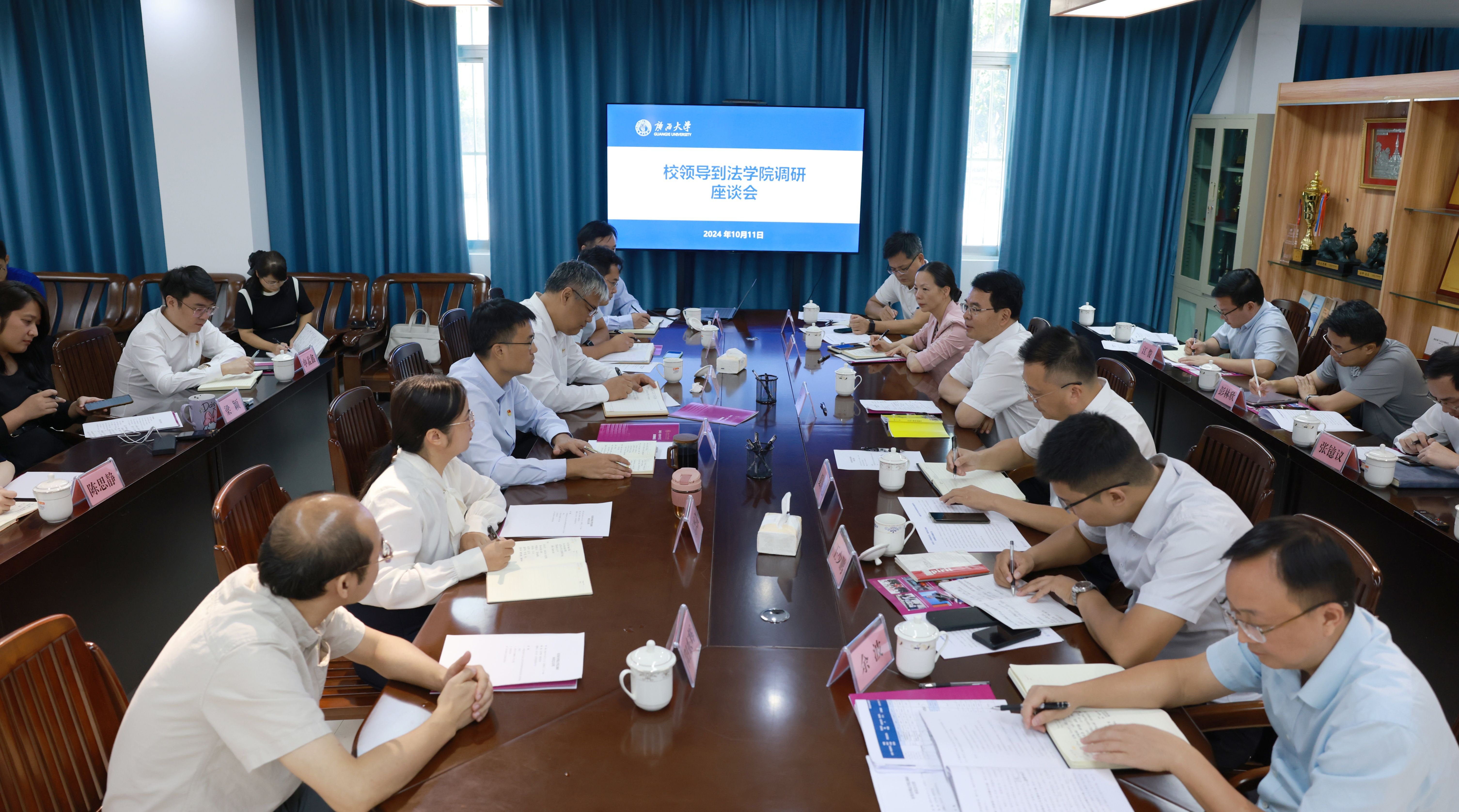 听取汇报后,李国忠在讲话中对法公司党委近年来积极贯彻落实中办国办《加强新时代法学教育和法学理论研究的意见》、推动标志性成果产出、加强涉外法治人才培养等方面的工作成效给予充分肯定,强调要认真学习贯彻党的二十届三中全会精神和全国教育大会精神,希望EMC易倍体育要增强紧迫感、危机感和担当意识,力争在新的发展机遇中实现更大突破,就公司未来提升办学层次、提高工作质效提出四点要求:一是要坚持把提高人才培养质量作为第一要务,毫不放松,夯实教学工作基础;二是要围绕学位点建设要求,锚定目标、细化方案、优化资源配置,全力打好攻坚战;三是强化党建引领,促进理论学习与业务提升,激励师生员工积极为公司公司发展做贡献;四是加强公司制度建设,提升内部治理水平,凝练办学文化,为争当广西法学教育排头兵提供有力保障。