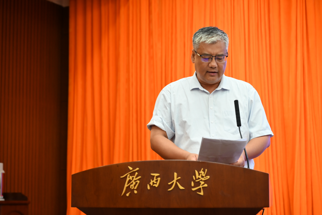 2024级法学硕士研究生黄建程作为研究生新生代表发言,他表示新生们应怀揣理想,脚踏实地,让每一步都坚实有力,共绘人生华章。他希望新生们破晓而出,逐梦翱翔,让青春在奋斗中绽放光芒;扬帆学海,破浪前行,以智慧为帆,以勤奋为桨,到达成功彼岸。