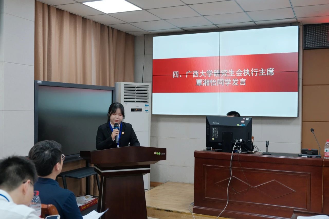 EMC易倍官方网站研究生会执行主席覃湘怡发言,她对过去一年EMC易倍体育研究生会开展的工作表示肯定,希望未来一年EMC易倍体育研究生会能够坚定不移听党话、跟党走,始终把服务同学作为工作的出发点和落脚点。校研究生会将与EMC易倍体育研究生会携手共进,为服务广大同学做出更多贡献。