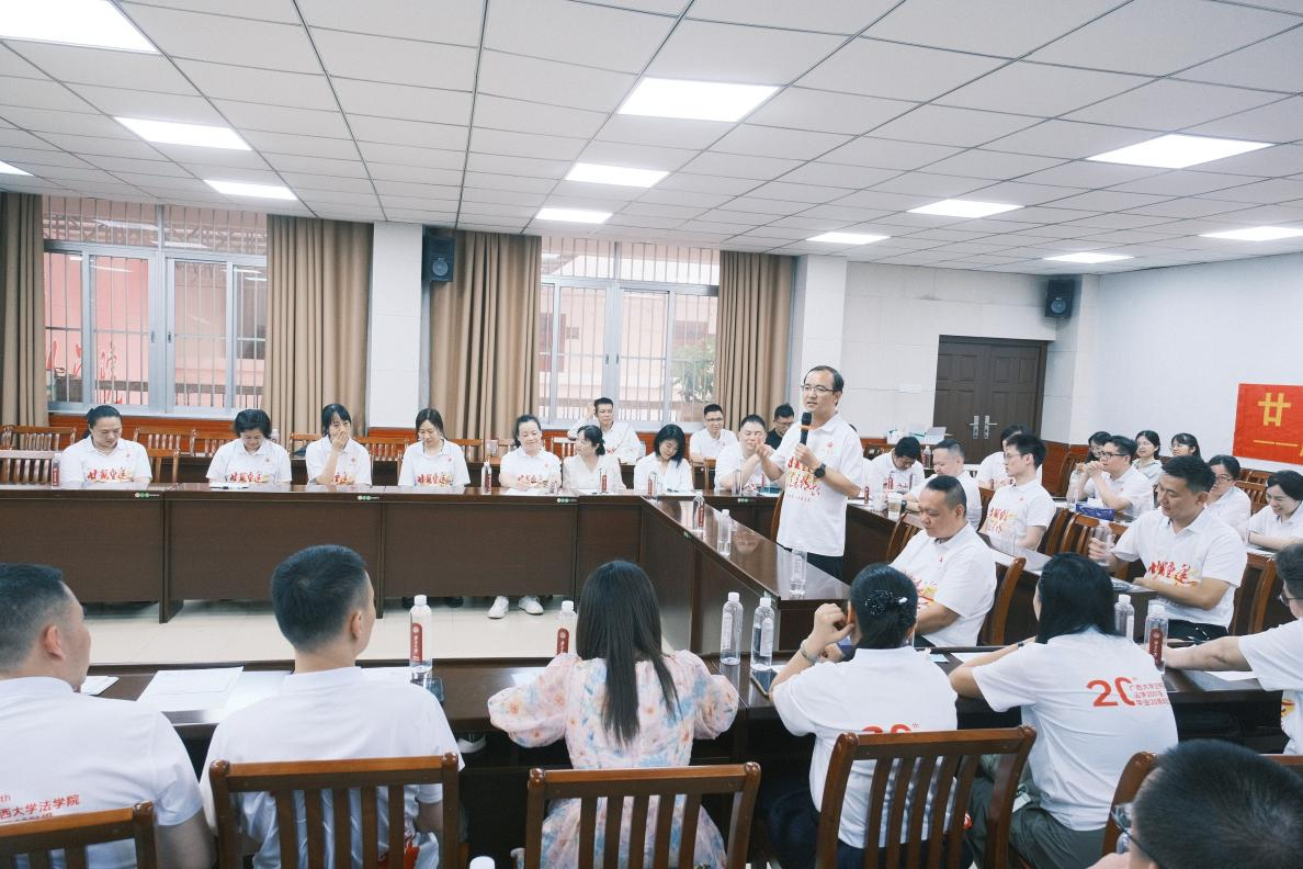在自由交流环节,员工们畅所欲言。他们分享了毕业后在法律实务、学术研究、社会服务等不同领域的奋斗历程,回忆起老师们对自己的谆谆教诲、感慨同窗间互帮互助的情谊,言语间满是对母校培养的感恩之情。