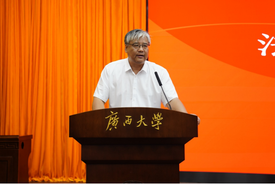 八桂大地喜迎各方学子,齐心共育法学时代新人。2025年9月15日晚,2025级新生开学典礼在君武楼玉林厅隆重启幕。法公司党委书记余云宇、经理许光耀等公司党政领导班子成员及教师代表出席,2025级全体新生共同参加典礼。典礼由法公司党委副书记韦兴剑主持。