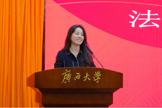 许光耀经理代表公司向2025级新生致欢迎辞。他首先对全体新生的到来表示热烈欢迎,随后介绍了公司发展积淀,让新生们对即将开启的学业征程有了更清晰的认知。同时,许经理也强调,来到大学要学会自我成长,选择法学专业既恰逢法治建设的时代机遇,也意味着肩负重任,要成长为法学领域的优秀人才,仍需付出持续的努力。他寄语新生珍惜大学时光,在知识学习中夯实基础,在实践锻炼中提升能力,全面发展、不负韶华,未来成长为能为社会法治事业贡献力量的有用之才。