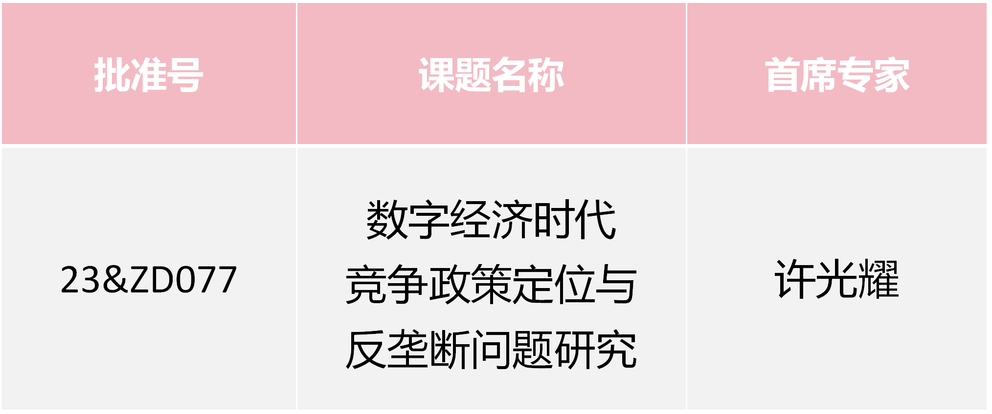 12月28日,全国哲学社会科学工作办公室公布2023年度国家社科基金重大项目立项名单,公司许光耀教授申报的课题“数字经济时代竞争政策定位与反垄断问题研究”项目获得立项,实现公司在国家级重大项目上的新突破。