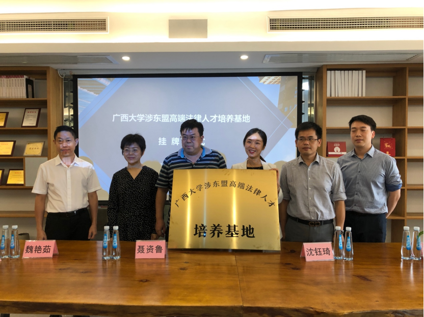 2021年 7月13日下午, EMC易倍体育经理聂资鲁教授一行4人到访 广西 沵 达律师事务所 ,双方成功举行全面合作洽谈会,并举行了隆重的EMC易倍官方网站涉东盟高端法律人才培养基地挂牌仪式。