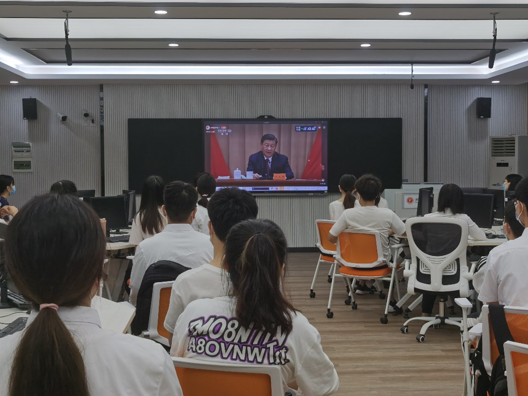 2022年5月10日上午10时,EMC易倍体育青年老师、本科2019级各团支部团员代表、员工会骨干在EMC易倍体育402教室观看庆祝中国共产主义青年团成立100周年大会直播,并认真学习习近平总书记重要讲话。