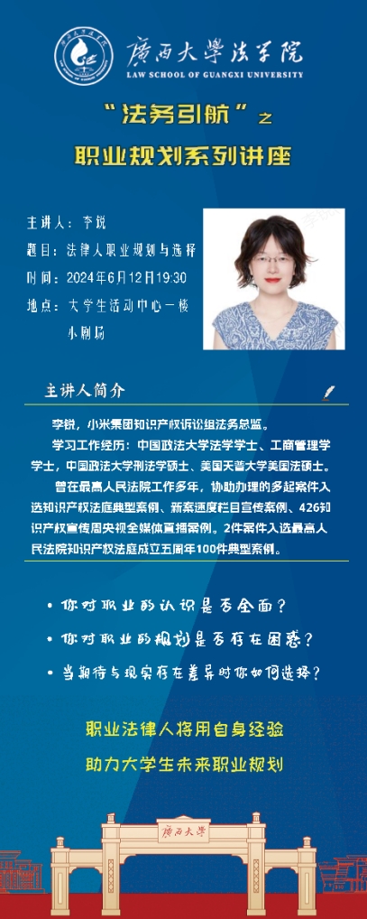 为帮助员工明晰职业生涯规划,揭开法务职业的神秘面纱,特邀请小米集团知识产权诉讼组法务总监李锐来给大家近距离交流,传授个人经验。